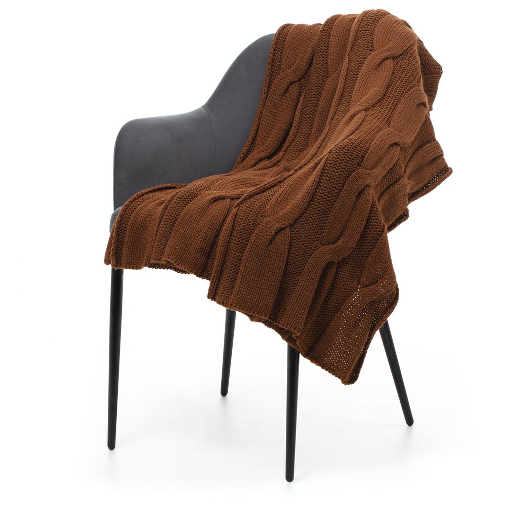 Snefald объемный плед благородного оттенка с орнаментом из крупных кос. Классический узор придает изделию элегантный вид, изысканности добавляет и цветовая гамма.