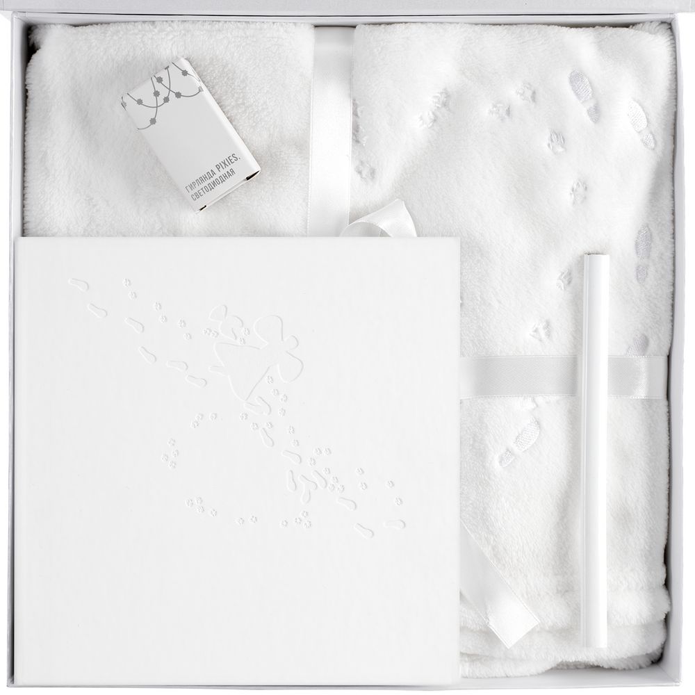 За всю зиму не сделать ни одного [снежного ангелаk досаднейшее упущение, ведь это особое зимнее искусство, любимое многими с детства! После создания такого ангела, правда, нельзя не оставить своих следов, вскоре они становятся частью общей зимней картины. Эта милая деталь не осталась без внимания в дизайне уютного подарочного набора [Снежный ангелk: мягкого белоснежного пледа из длинноворсового флиса и приятного на ощупь скетчбука в тон.