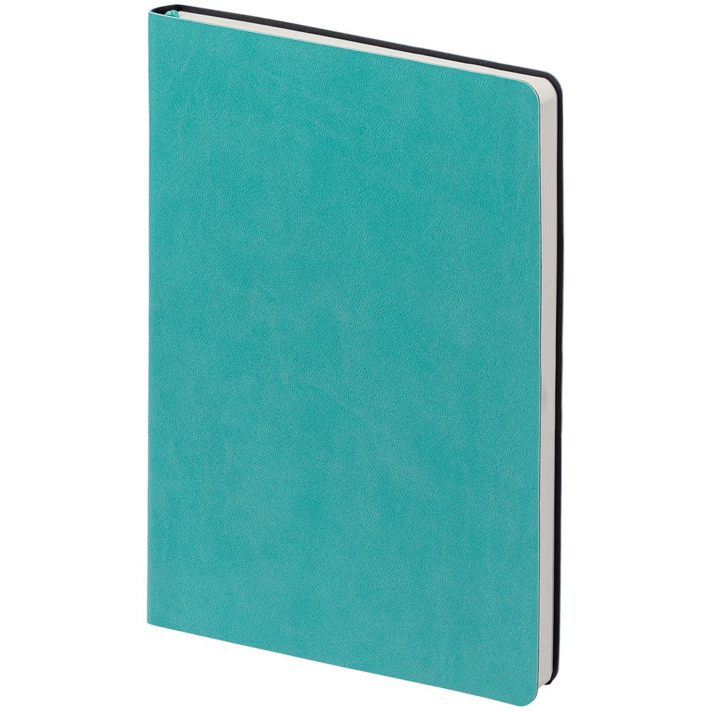 Ежедневник с гибкой обложкой, выполнен из материала Latte, бирюзовый, дополнен ляссе в цвет обложки.