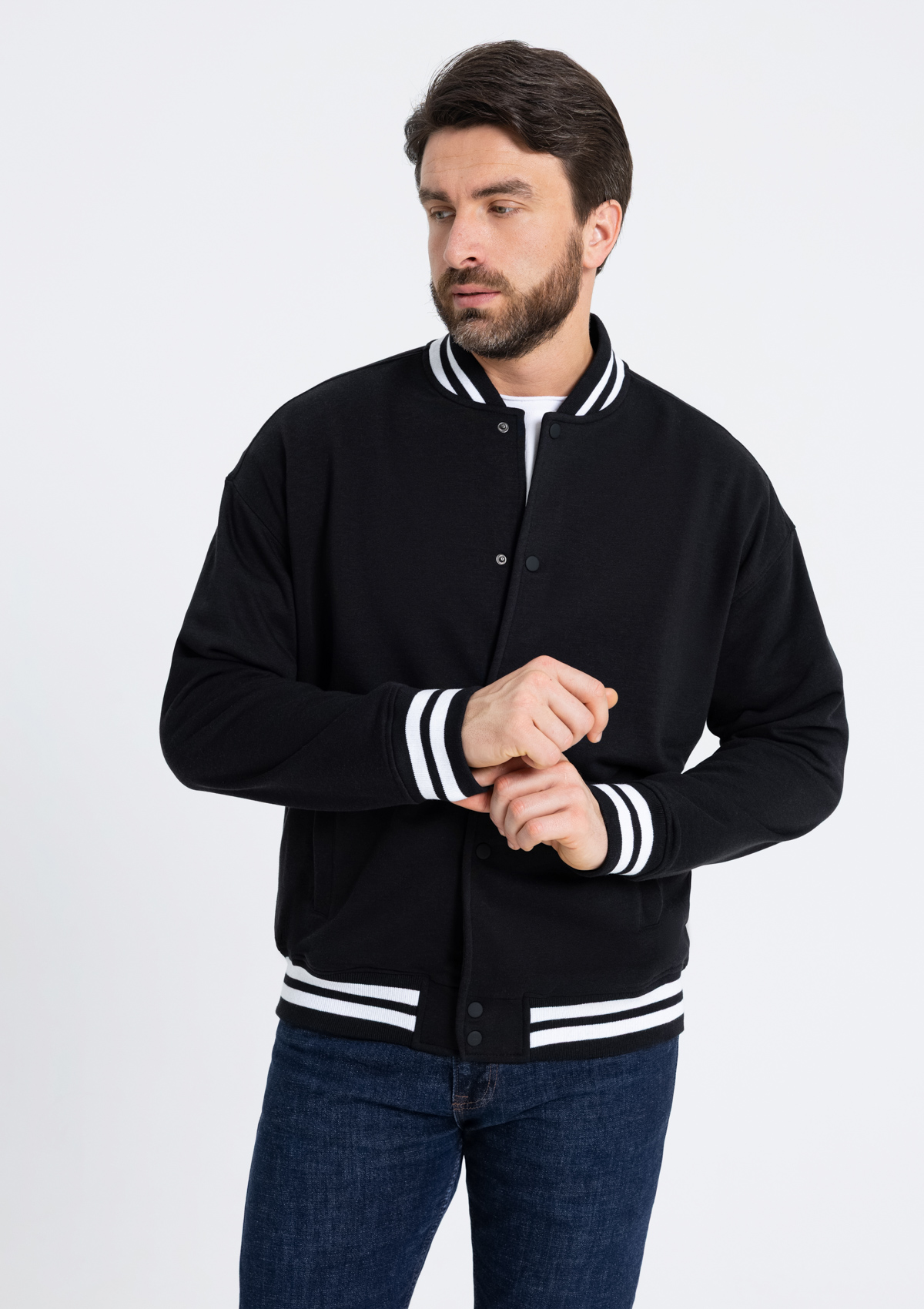 Бомбер унисекс STAN футер без начеса с контрастом 340, 71 (Чёрный, 50/L)