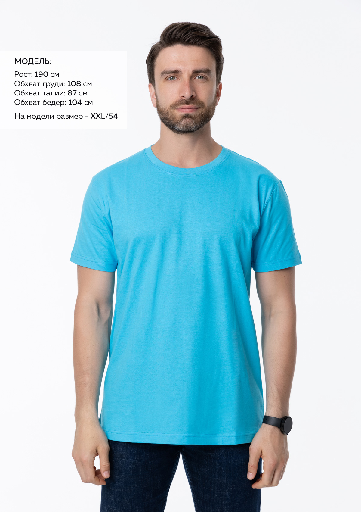 Размер мужской футболки: XXL/54. Параметры модели: рост 190 см.; обхват груди 108 см.; обхват талии 87 см.; обхватPбедерP104Pсм.Характеристики: