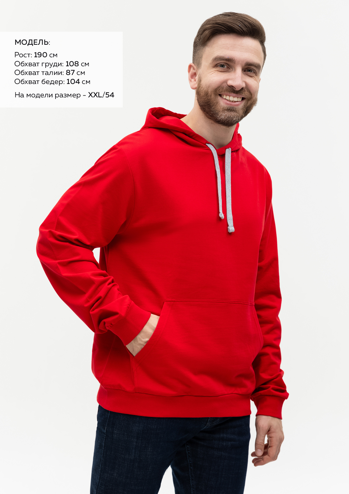 Размер мужского худи: XL/52. Параметры модели: рост 190 см.; обхват груди 108 см.; обхват талии 87 см.; обхват бедер 104 см.Характеристики: