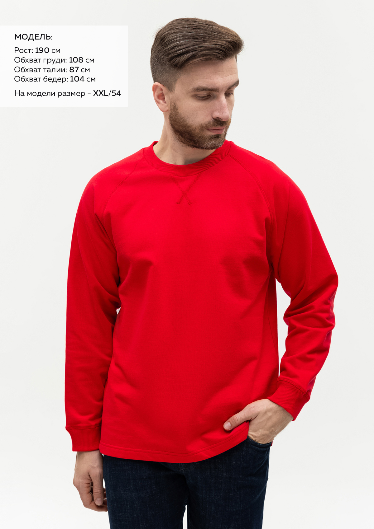 Размер мужского свитшота: XXL/54. Параметры модели: рост 190 см.; обхват груди 108 см.; обхват талии 87 см.; обхват бедер 104 см.Характеристики: