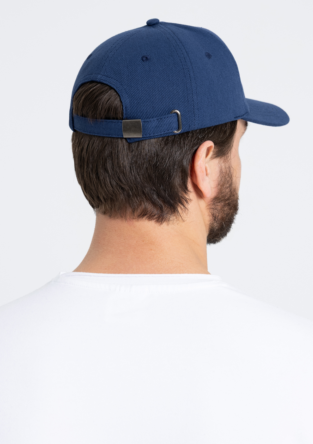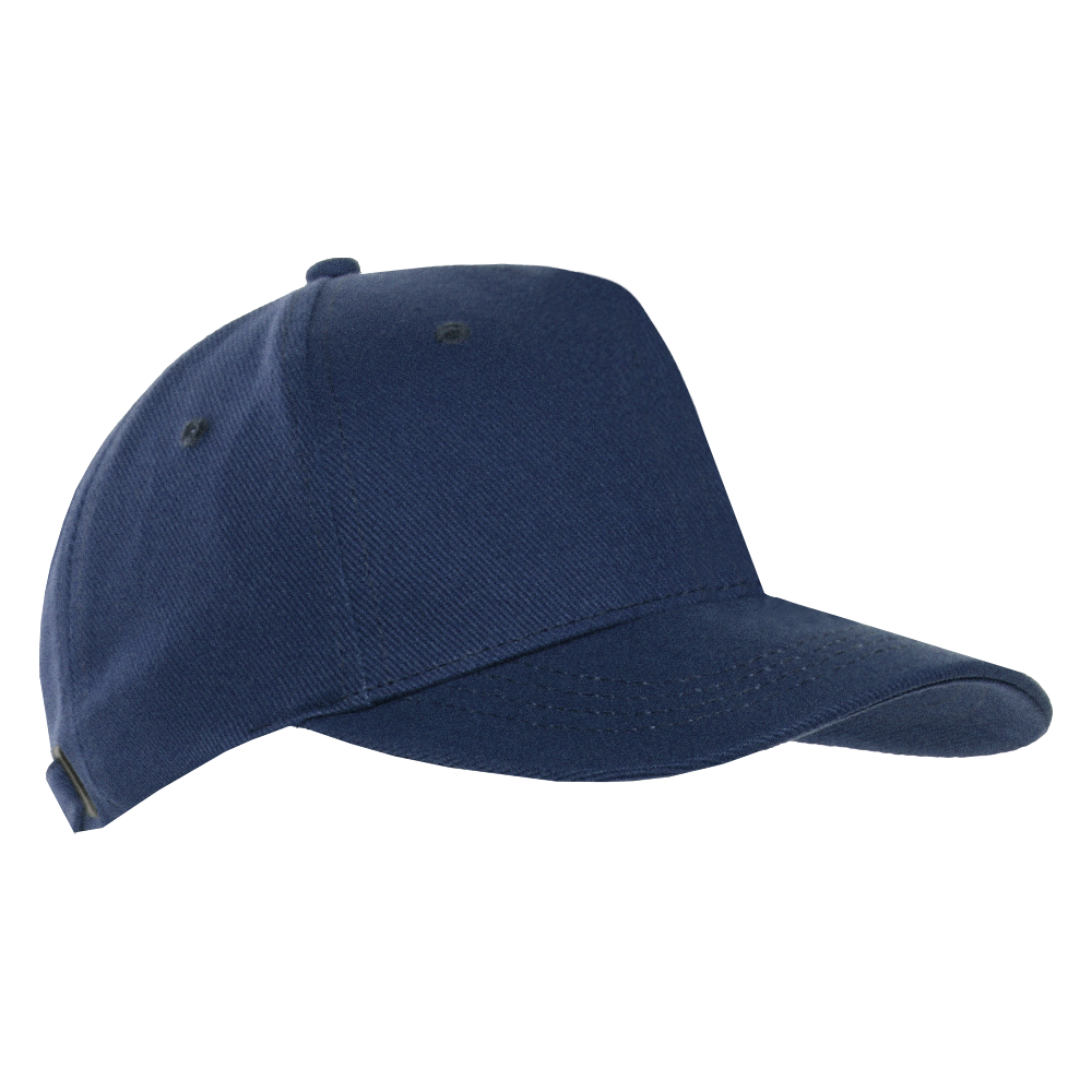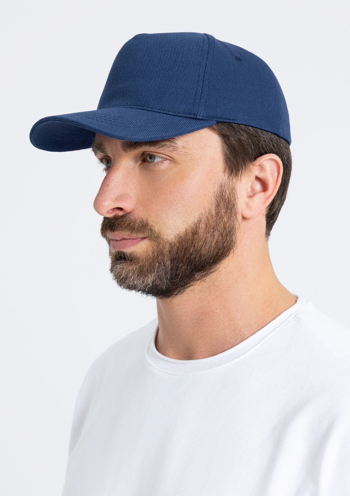 Бейсболка-пятиклинка без лобового шва с изогнутым жестким козырьком и регулируемой металлической застежкой. <br />