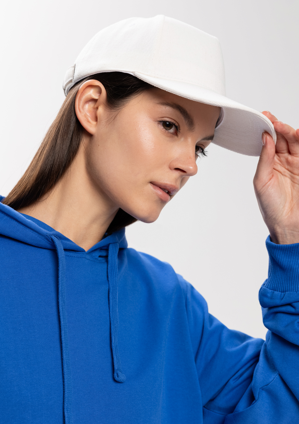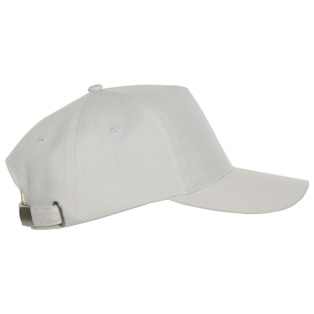 Бейсболка-пятиклинка без лобового шва с изогнутым жестким козырьком и регулируемой металлической застежкой. <br />