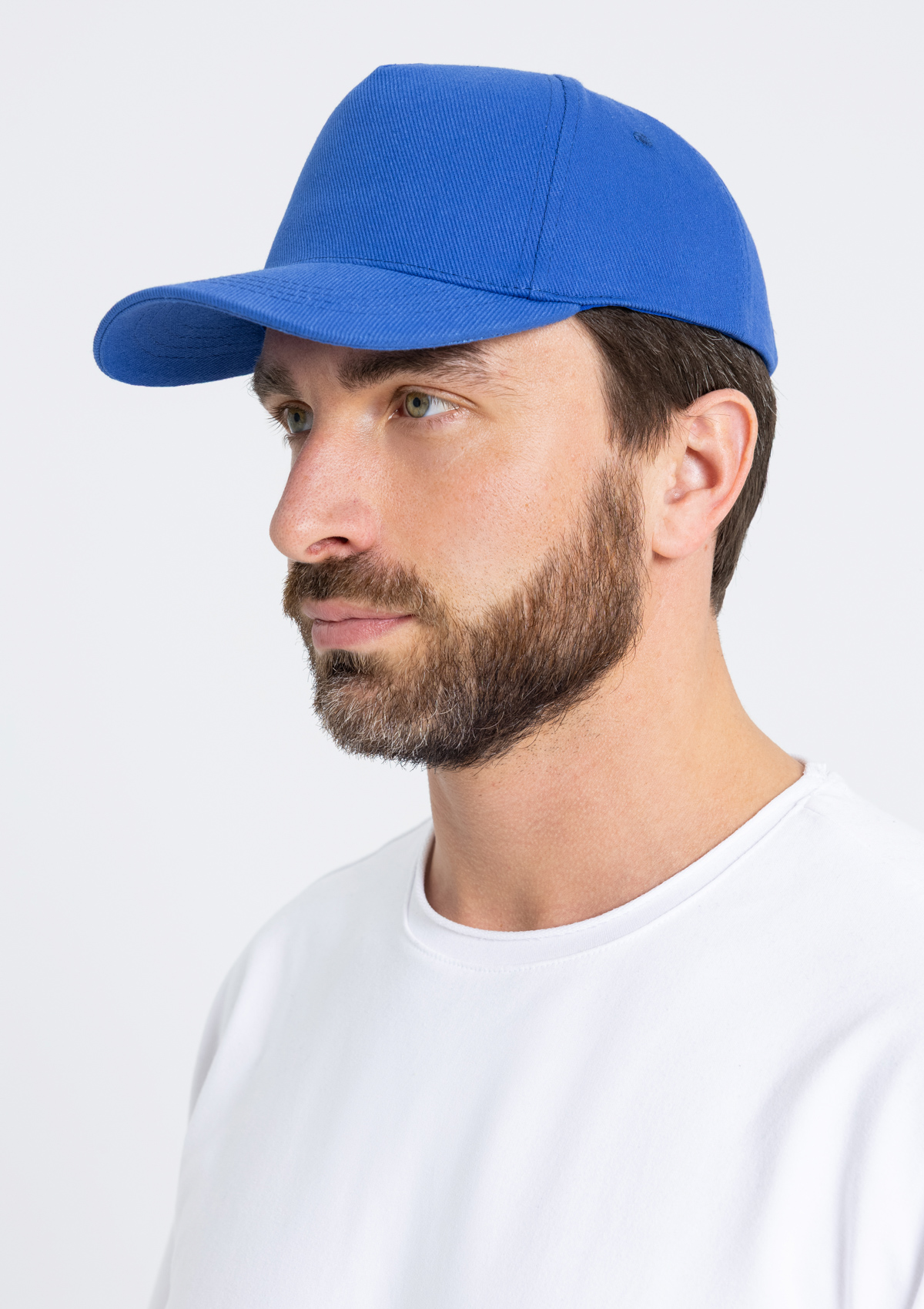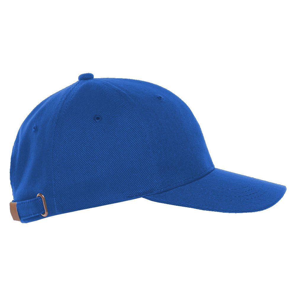 Бейсболка-пятиклинка без лобового шва с изогнутым жестким козырьком и регулируемой металлической застежкой. <br />