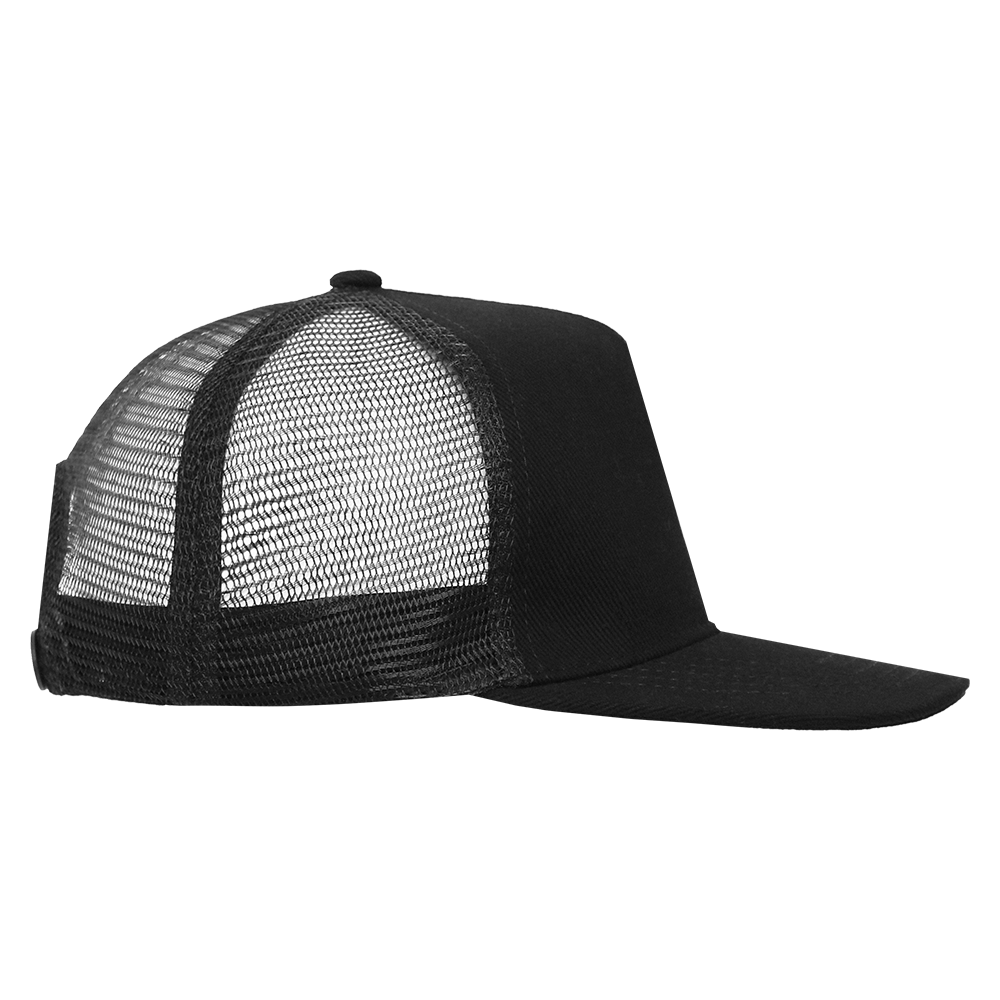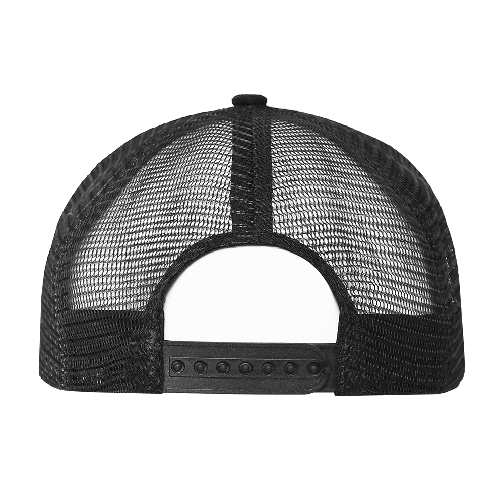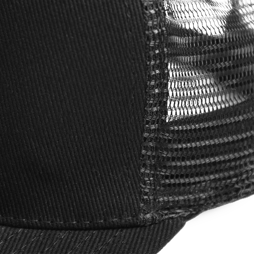 Бейсболка-пятиклинка с прямым жестким козырьком и пластиковой регулируемой застежкой, боковые клинья выполнены из жесткой сетки. <br />