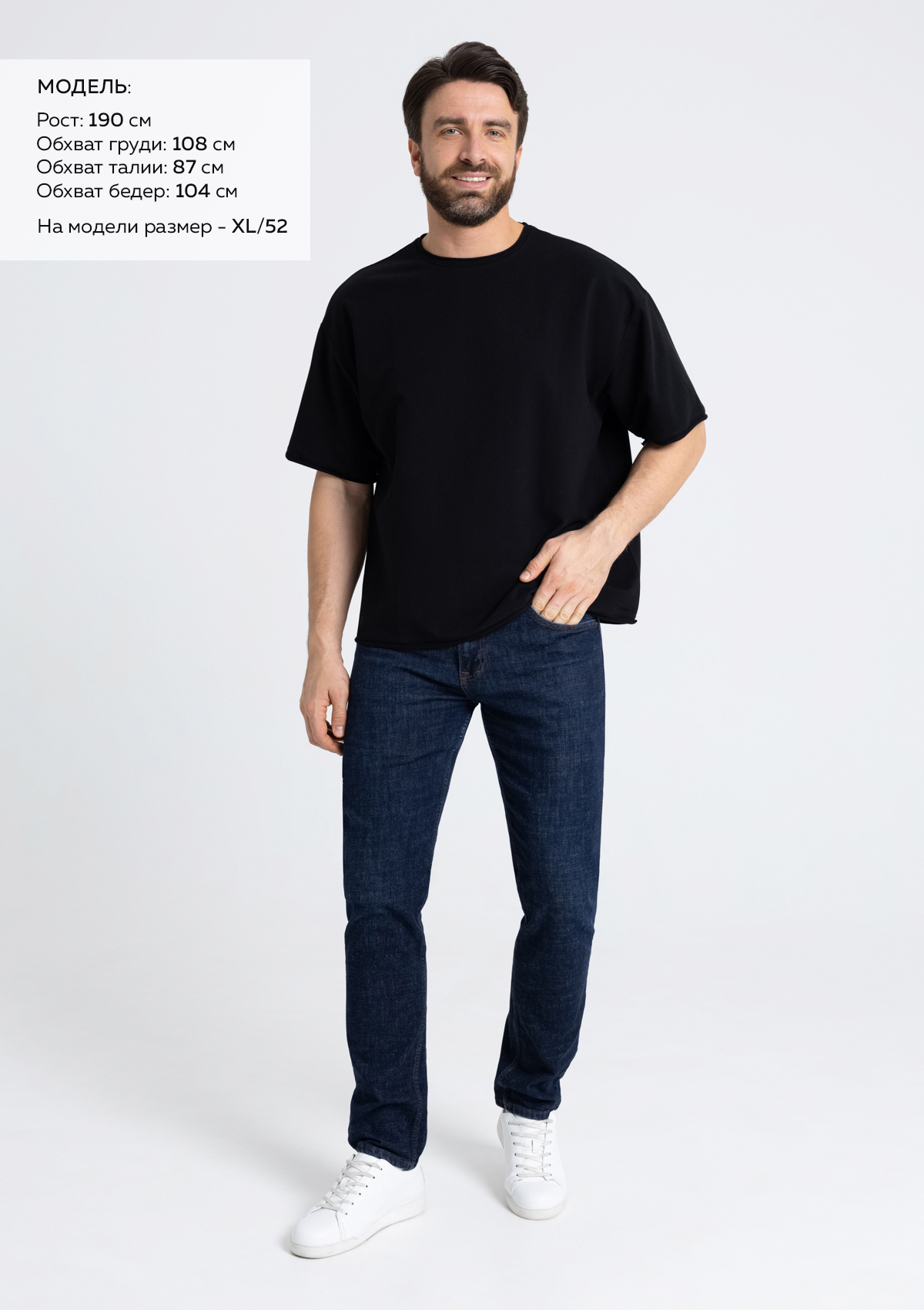 Размер мужской футболки: XL/52. Параметры модели: рост 190 см.; обхват груди 108 см.; обхват талии 87 см.; обхват бедер 104 см.Характеристики: