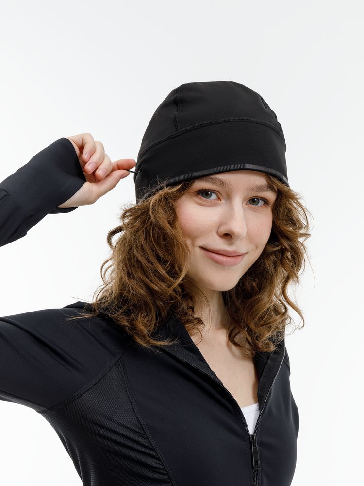 Шапка выполнена в черном цвете, но имеет светоотражающую полосу вдоль края, что улучшает видимость спортсмена в условиях плохой освещенности.P