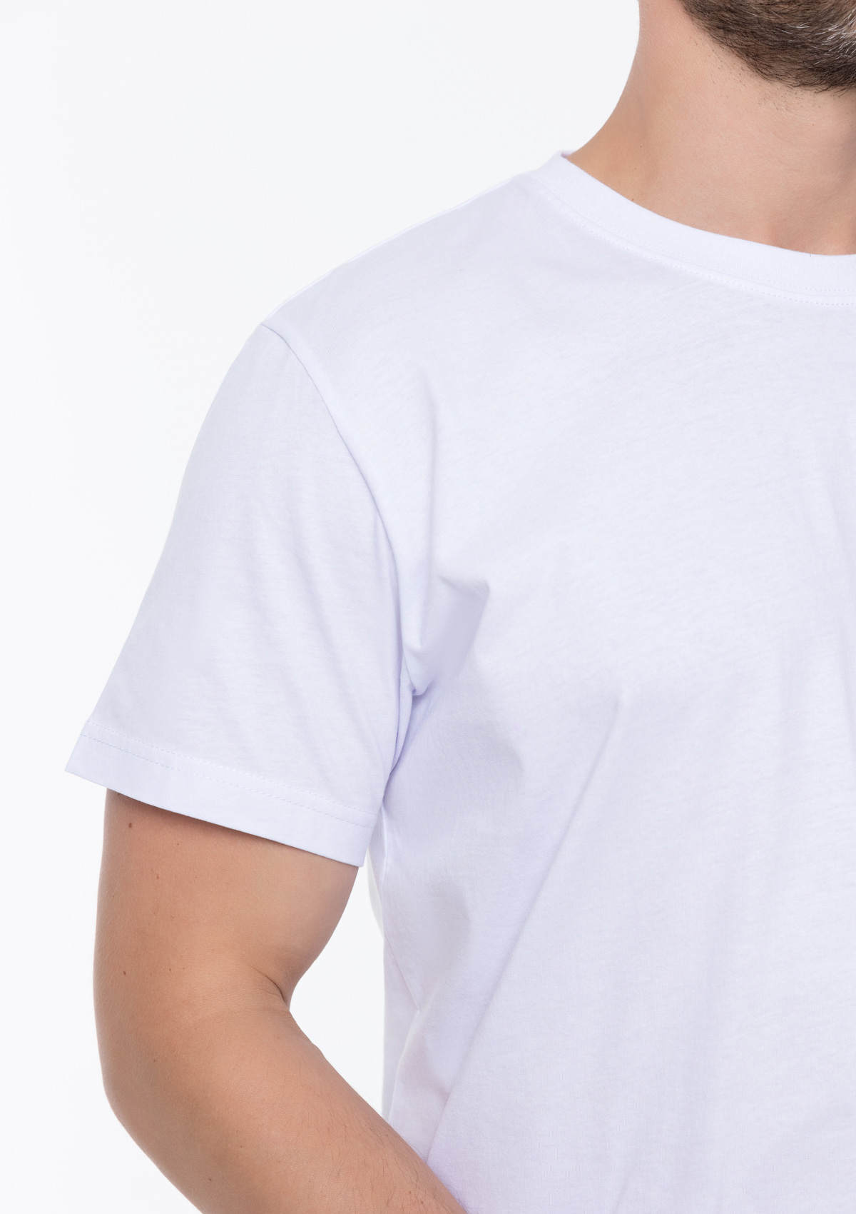 Материал футболки кулирная гладь. Материал, изготовленный из 100% хлопка, обладает отличными влагоотводящими и воздухопроницаемыми свойствами. Ткань легкая и приятная к телу. <br />