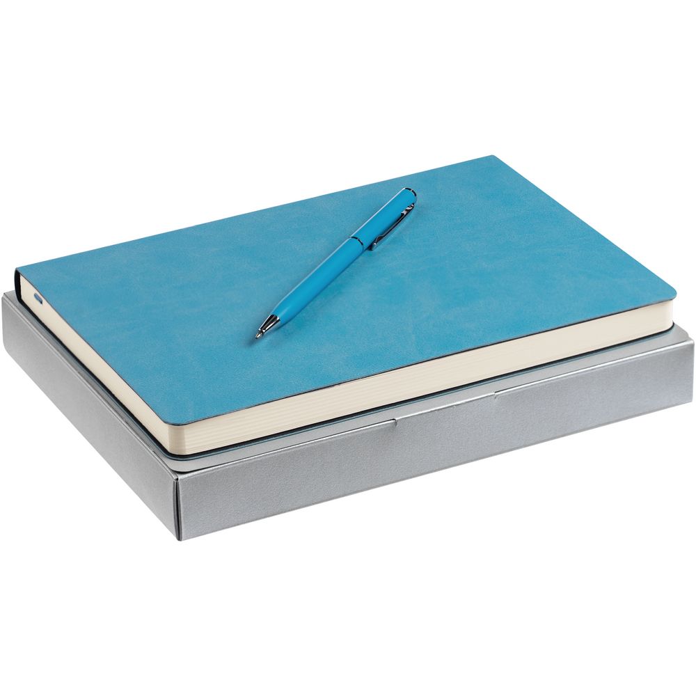 Недатированный ежедневник с гибкой обложкой изPматериала Latte с ляссе в цвет обложки, а также ручка в тон в подарочной коробке из дизайнерского картона.