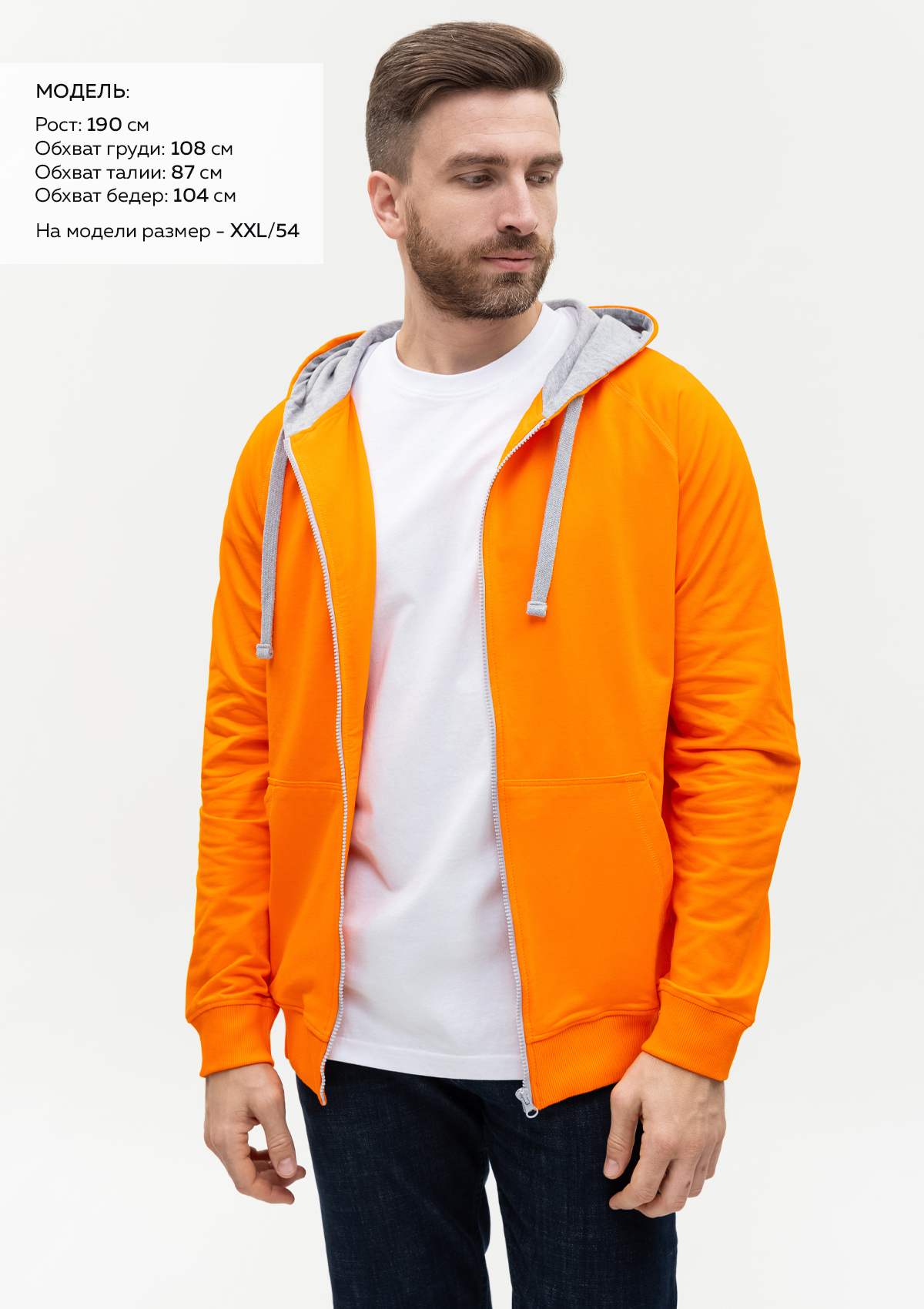 Размер мужской толстовки: XXL/54. Параметры модели: рост 190 см.; обхват груди 108 см.; обхват талии 87 см.; обхват бедер 104 смХарактеристики: