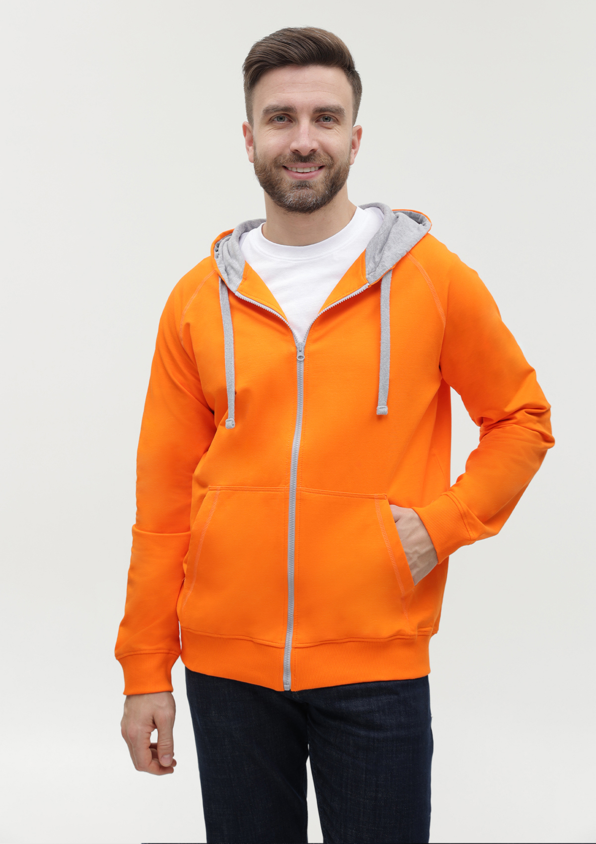 Толстовка мужская STAN с капюшоном на молнии футер без начёса 260, 61 (Оранжевый, 46/S)