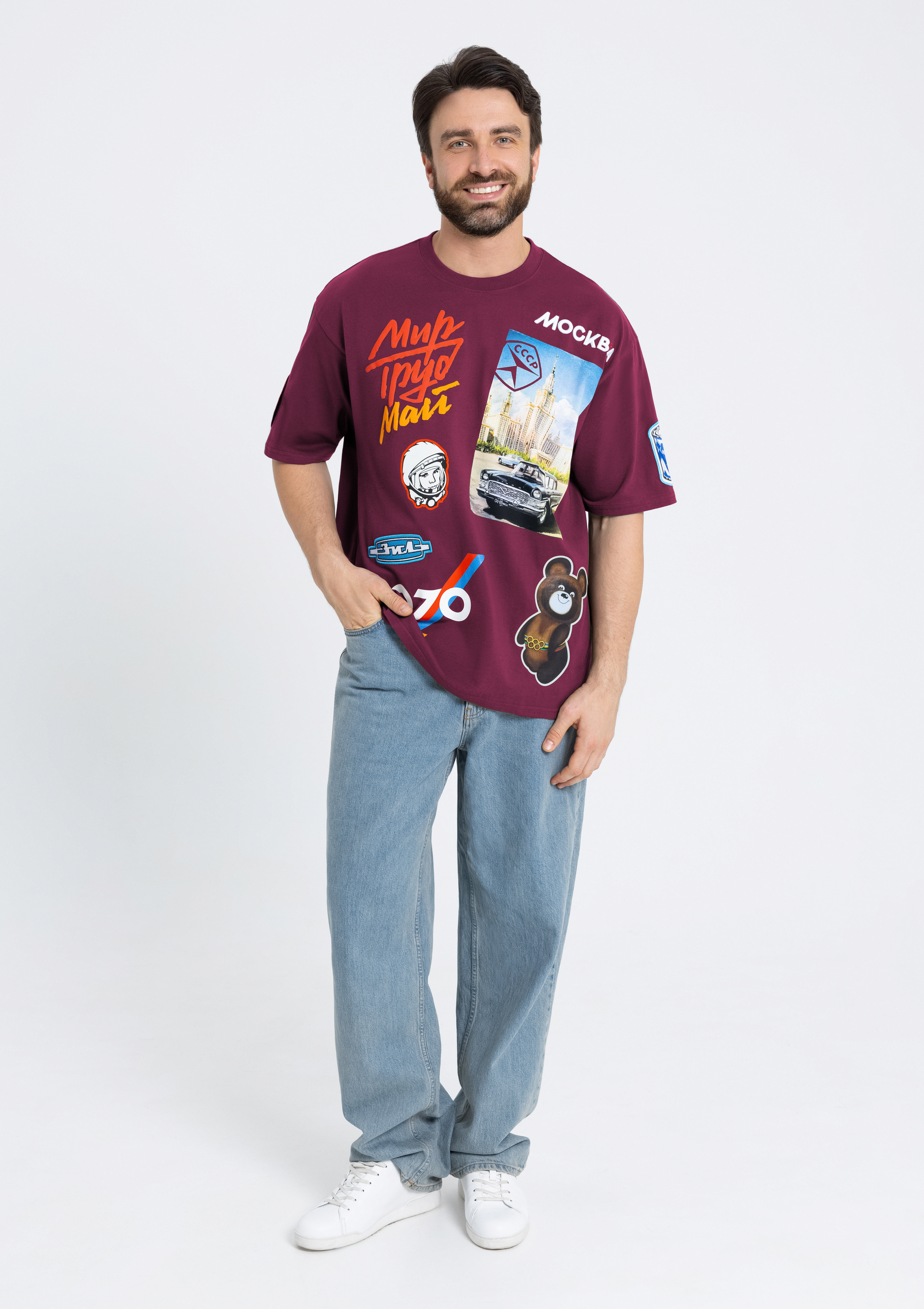 Футболка унисекс оверсайз STAN хлопок 240, 56 (Бордовый, 52/XL)