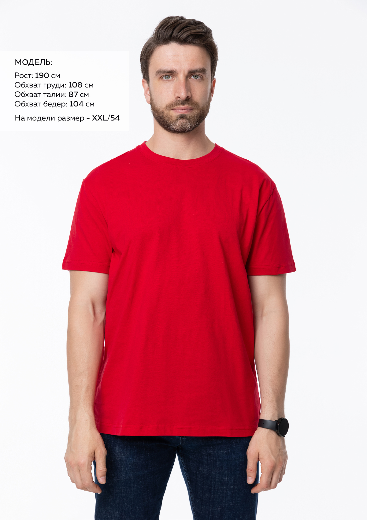 Размер мужской футболки: XXL/54. Параметры модели: рост 190 см.; обхват груди 108 см.; обхват талии 87 см.; обхватPбедерP104Pсм.Характеристики: