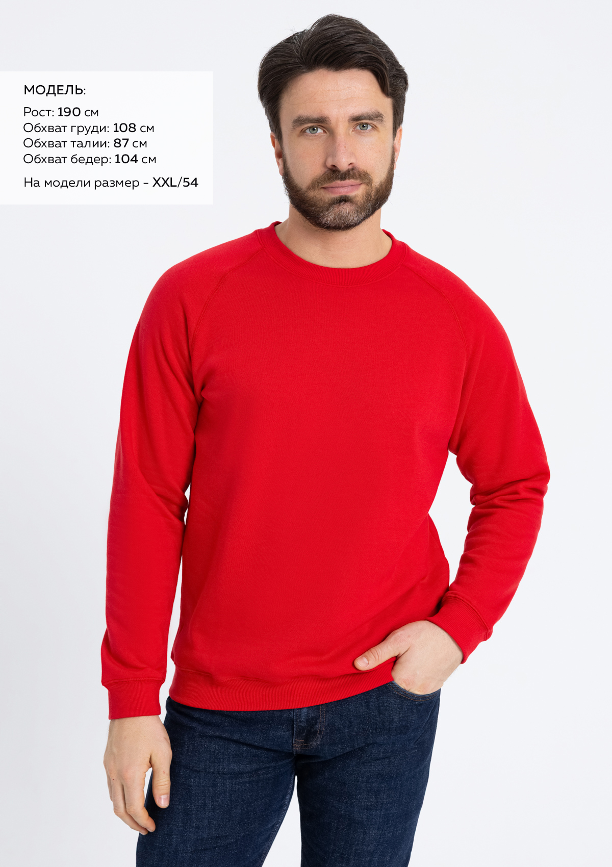 Размер мужской толстовки: XL/52. Параметры модели: рост 190 см.; обхват груди 108 см.; обхват талии 87 см.; обхват бедер 104 смХарактеристики: