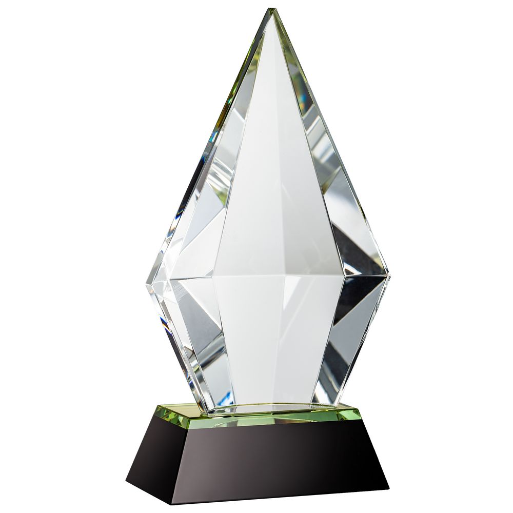 Стела изготовлена из стекла К9, в основе которого лежит оптическое боросиликатное стекло. Эту марку стекла отличает низкий процент посторонних включений, высокий показатель преломления и высокая прозрачность идеальные качества для изготовления наград премиального уровня.