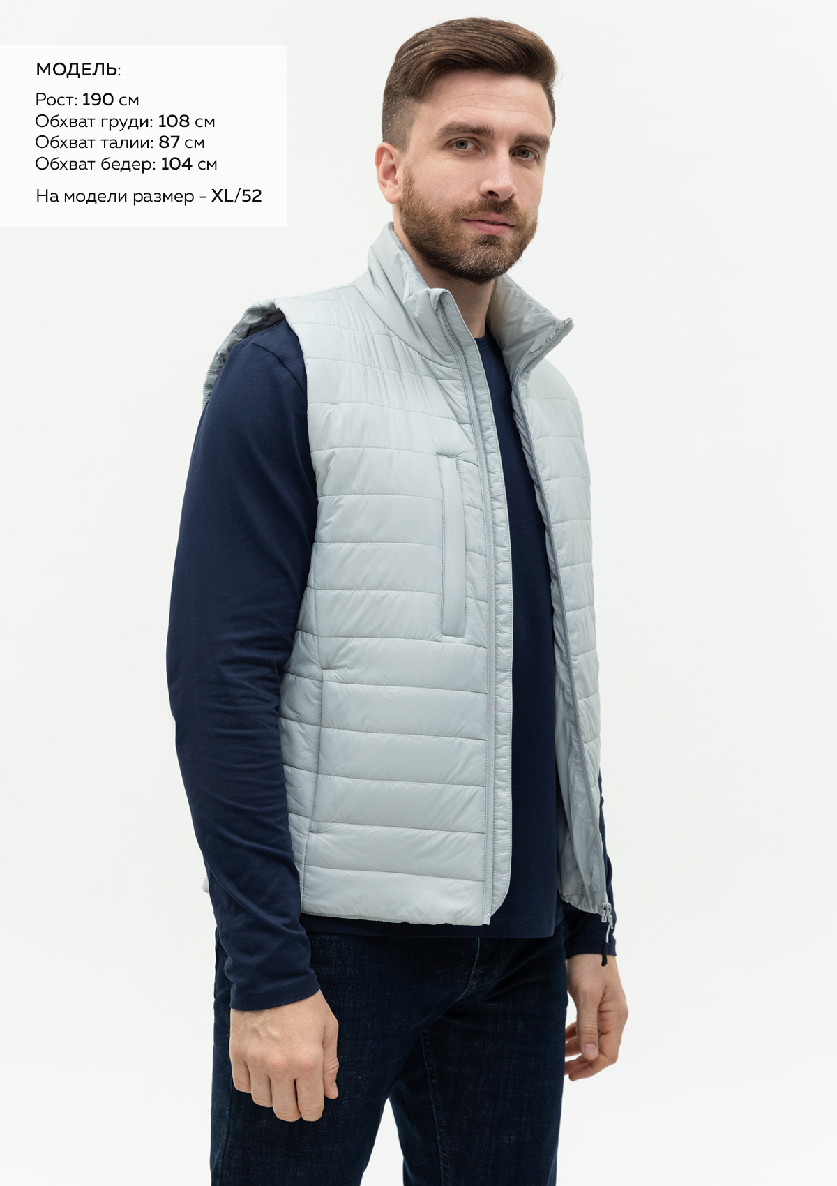 Размер на модели: XL/52. Параметры модели: рост 190 см.; обхват груди 108 см.; обхват талии 87 см.; обхват бедер 104 см.Характеристики: