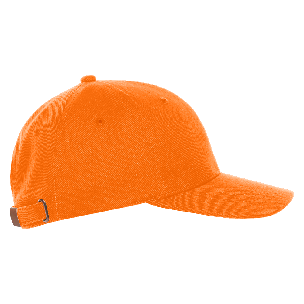 Бейсболка-пятиклинка без лобового шва с изогнутым жестким козырьком и регулируемой металлической застежкой. <br />