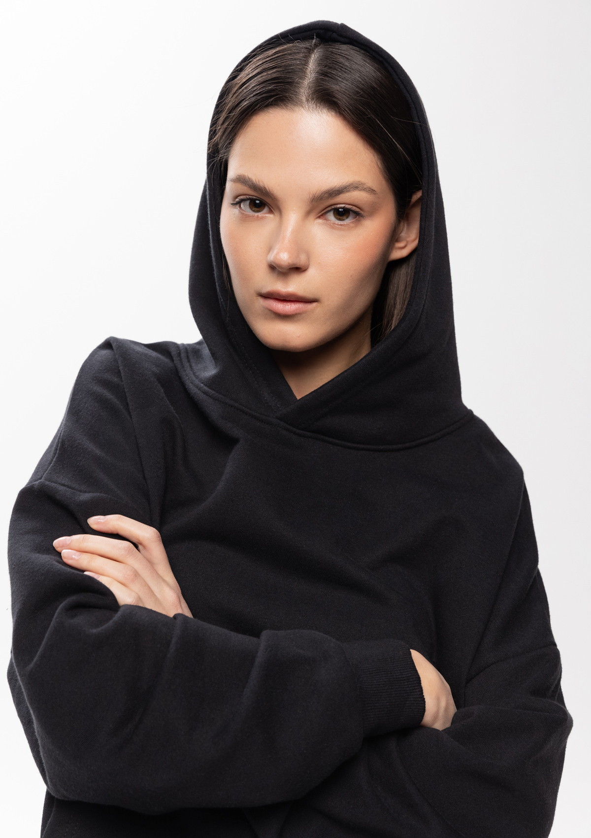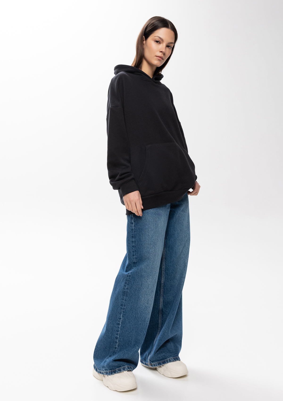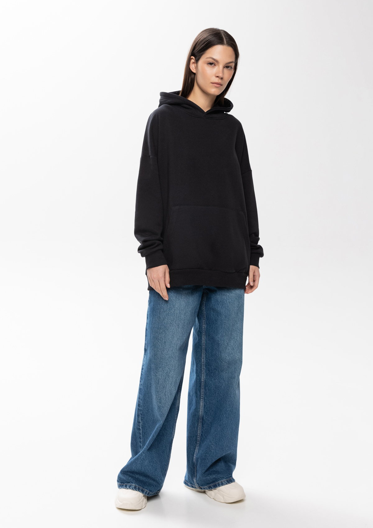 Универсальная толстовка свободного силуэта с капюшоном комфортной глубины, спущенной линией плеча и глубоким карманом-кенгуру. Манжет и низ изделия оформлены широкой эластичной резинкой. <br />