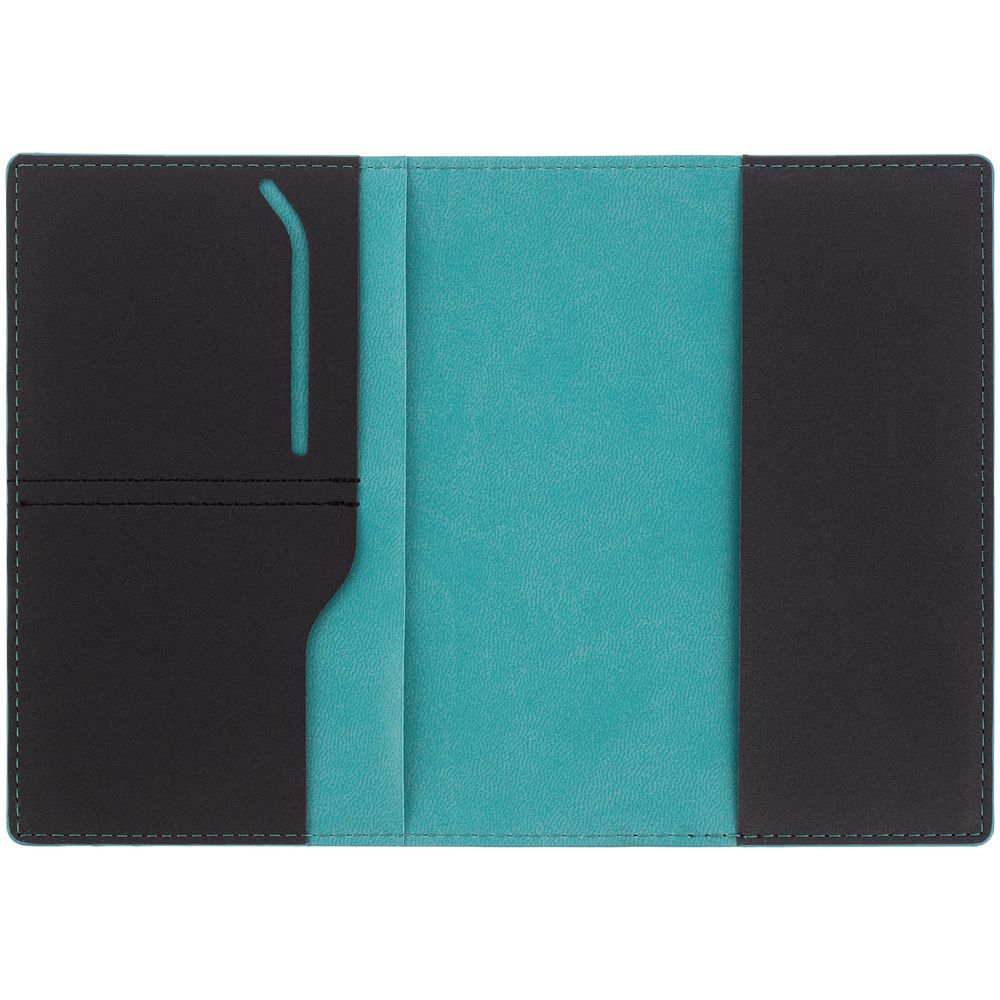 Обложка для паспорта Multimo, черная с бирюзовым