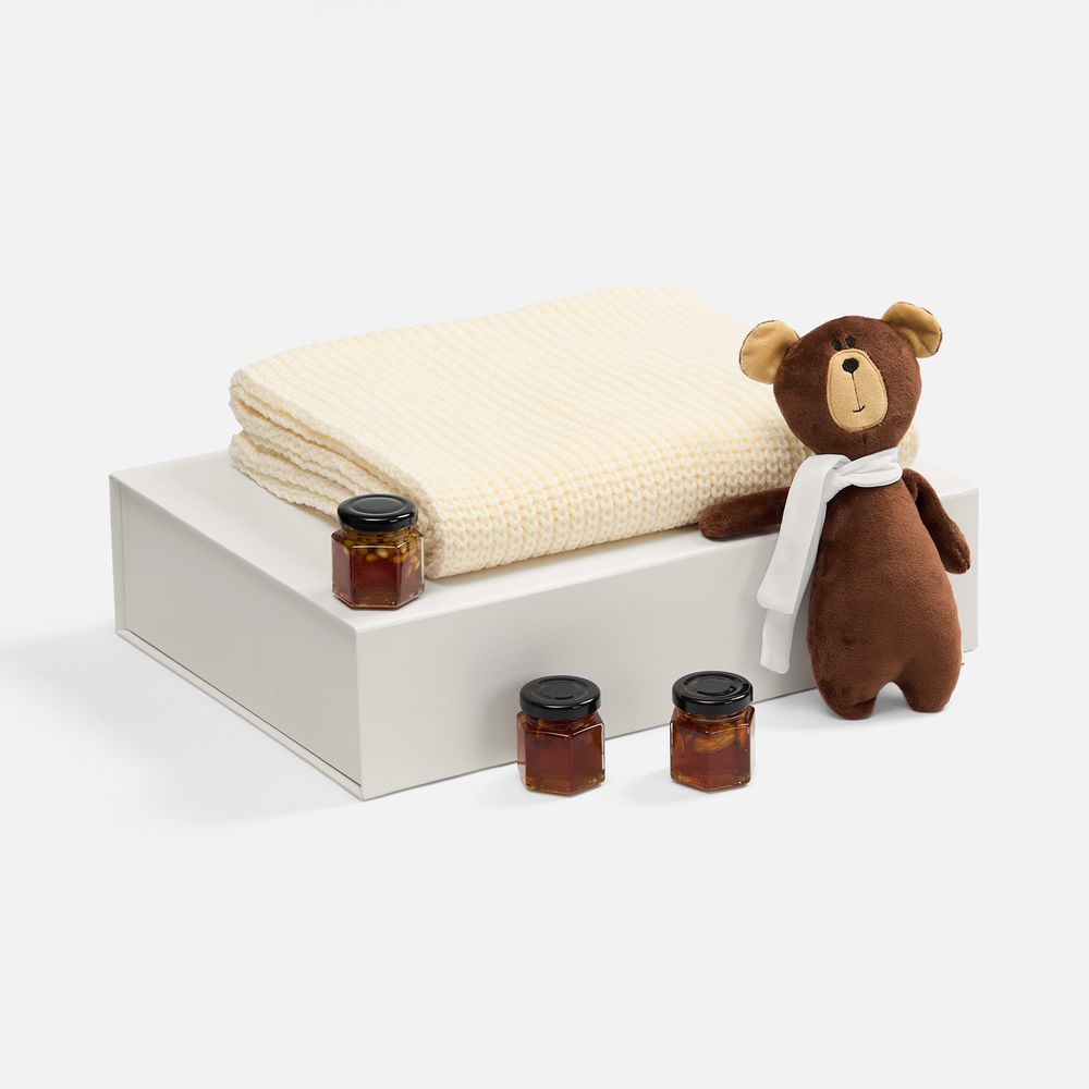 Милый мишка в шарфике с целой коллекцией разнообразного ароматного меда идеально дополняет основной, более практичный подарок объемный шарф из толстой пряжи, который впишется в любой зимний образ.Характеристики: