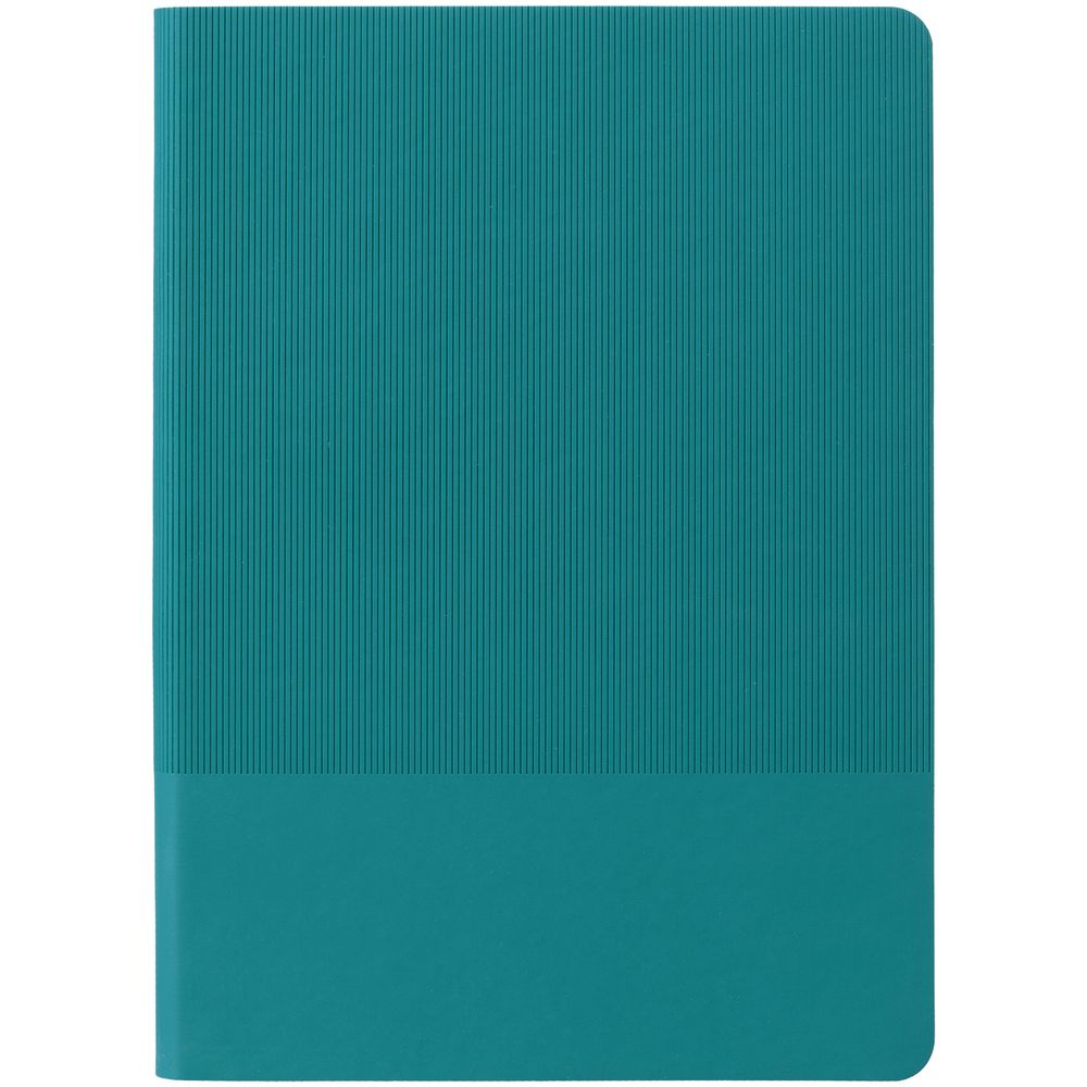 Ежедневник с гибкой обложкой выполнен из материала Soft Touch,Pцвет морской волны II и Latte, цвет морской волны (внутренний материал); дополнен ляссе бирюзового цвета и фактурным тиснением обложки.