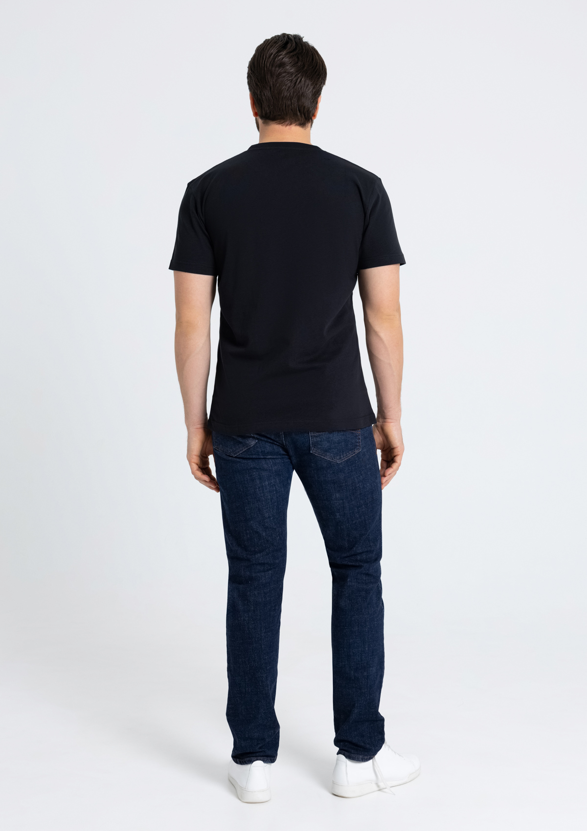 Мужская футболка прямого силуэта с округлым воротом и втачным рукавом. <br />