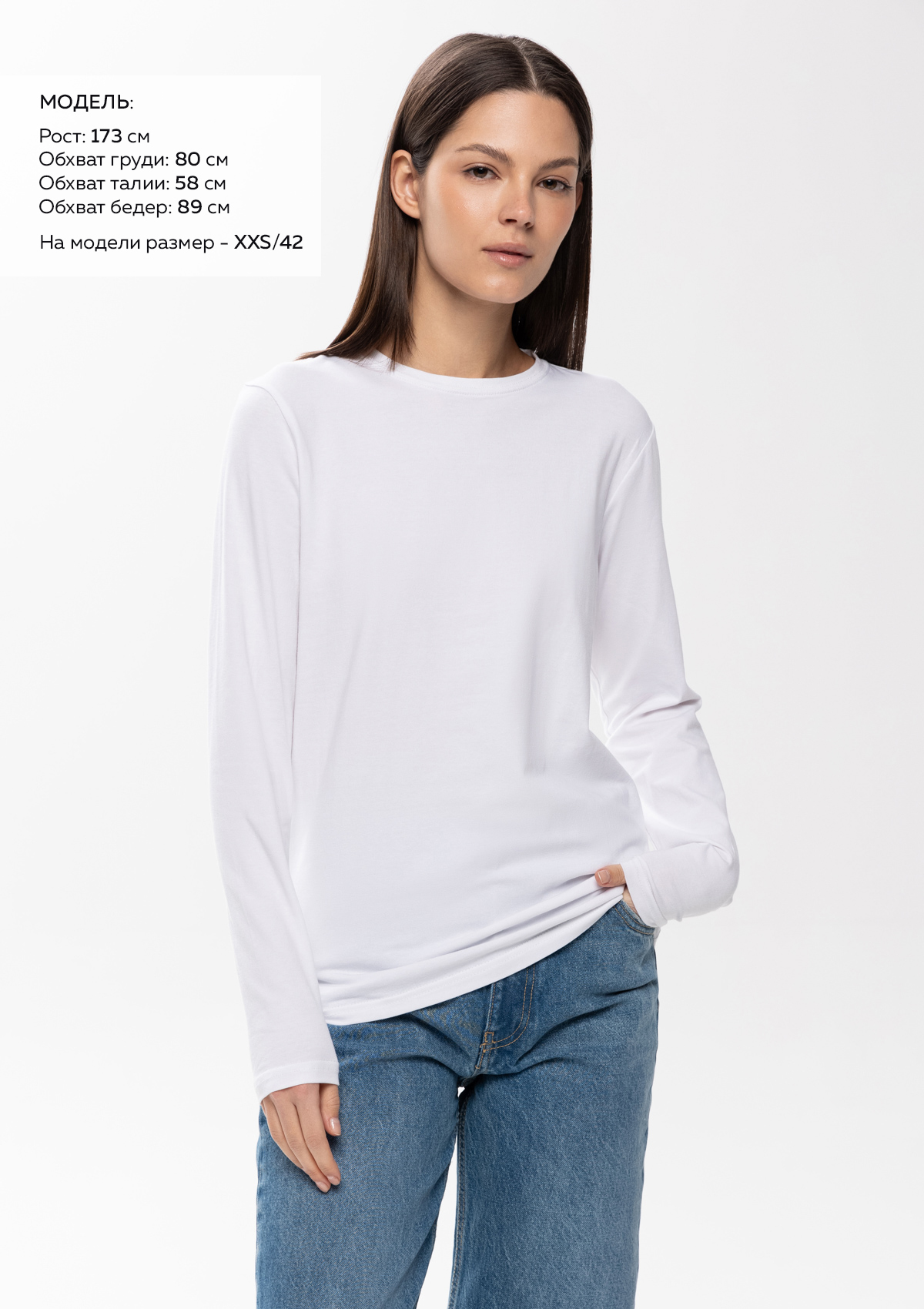 Универсальная футболка прямого силуэта с округлым воротом и длинным втачным рукавом. Плечевые швы и шов горловины усилены настрочной бейкой из основного полотна.<br />